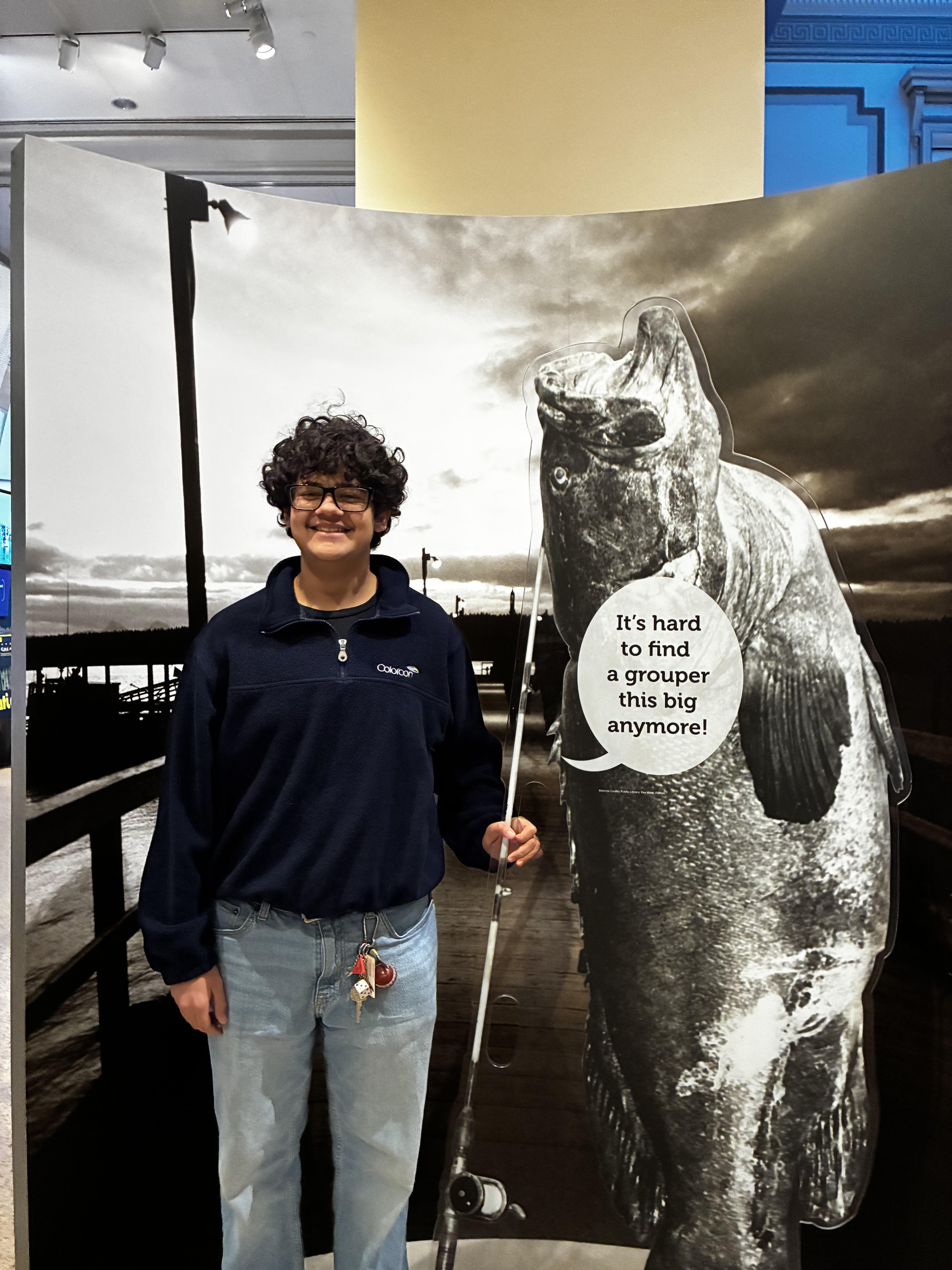 The "Human Connections: Who Should Care For The Ocean? Everyone!" exhibit is essentially a wall that shows many of the human impacts on the ocean. To me, the biggest issues that it outlined were ocean acidification and pollution in the ocean. The exhibit used words to explain that the constant burning of fossil fuels pumps carbon dioxide into the atmosphere, some of which ends up dissolving into the ocean. Upon dissolving, carbonic acid is formed which acidifies the ocean. The exhibit used images of dead coral to show the effects of a more acidic ocean. The supplemental text explains that this can throw ecosystems off balance, thus having a large-scale negative butterfly effect on many of the ocean’s communities. To emphasize the negative effects of pollution on the ocean, the exhibit explained how many fishing nets are left in oceans, leading to marine life being killed by abandoned traps. The exhibit also uses graphic images to emphasize the scale of the problem. For example, there was an image of a dead layman albatross (a type of bird) chick’s stomach with over 12 ounces of plastic waste inside of it. The exhibit also uses images of physical representations of fishing nets and other waste that finds its way into the ocean. The usage of graphic images encourages people not to harm any more animals and wildlife any more than we already have.