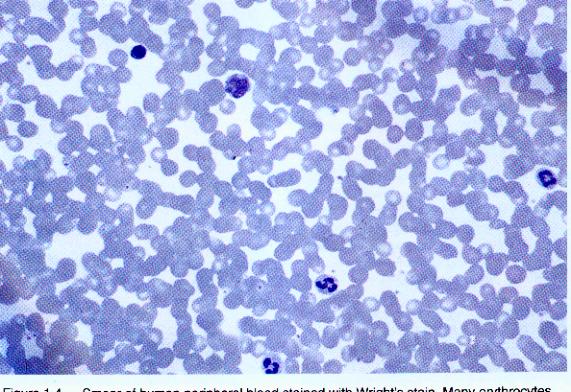 Smear of human peripheral blood stained with Wright's stain.Human Peripheral Blood Cells