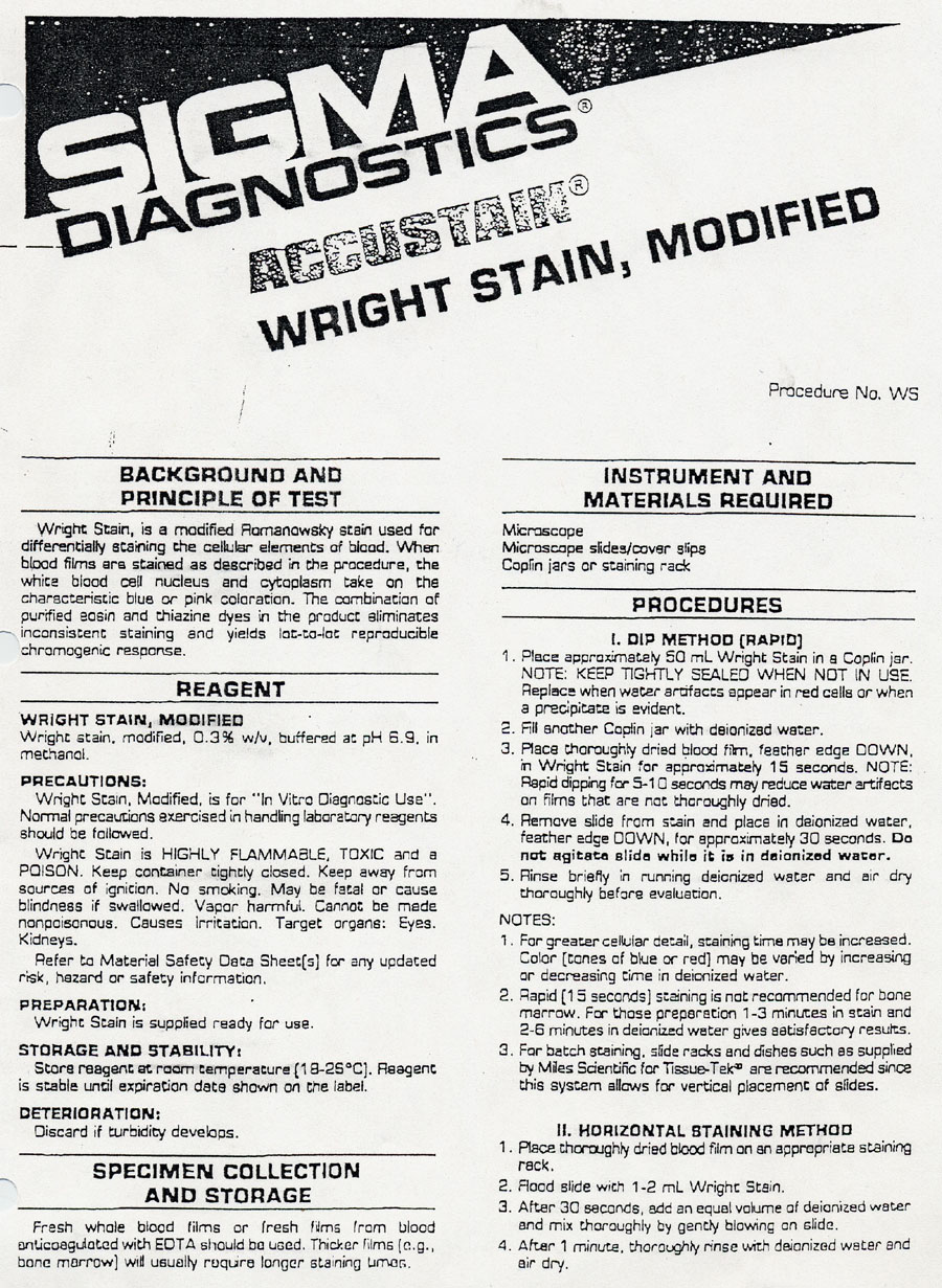 7. Stain smear with Wright stain as indicated on the accompanying sheet.