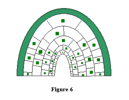 Additional tests were done on an elliptical shell and a cylindrical shell, both without inner core material, to show the difference in stress due to varying the shell geometry. Appendix C shows four analyses, two shell thickness cases for each shell geometry. The elliptical shell shows an overall lower stress distribution the ridge. Higher stress exists on the sides of the shell in both cases. Also, the geometry of the plates within the core can be changed to follow the curve of the shell, where it would be hollow in the center most part of the core (see figure 6). This model would still allow interconnectivity between the plates as long as they were still offset and may be a closer representation of the actual pore layout within a bone. The geometry of the pores could also be circular instead of square.