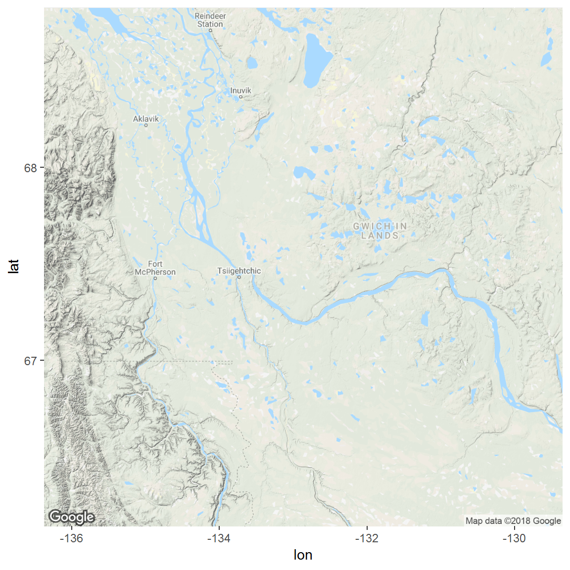 inuvik.map <- get_map(location = c(longrange[1], latrange[1], longrange[2], latrange[2]), maptype = "terrain", source = "google")