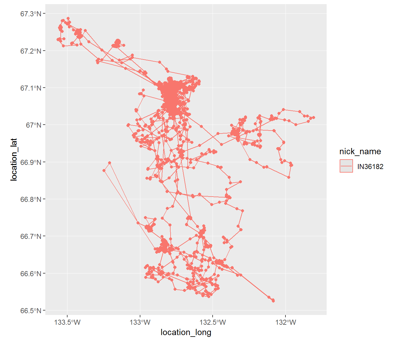 labs(x="Longitude", y="Latitude", main = "Inuvik Caribou")
