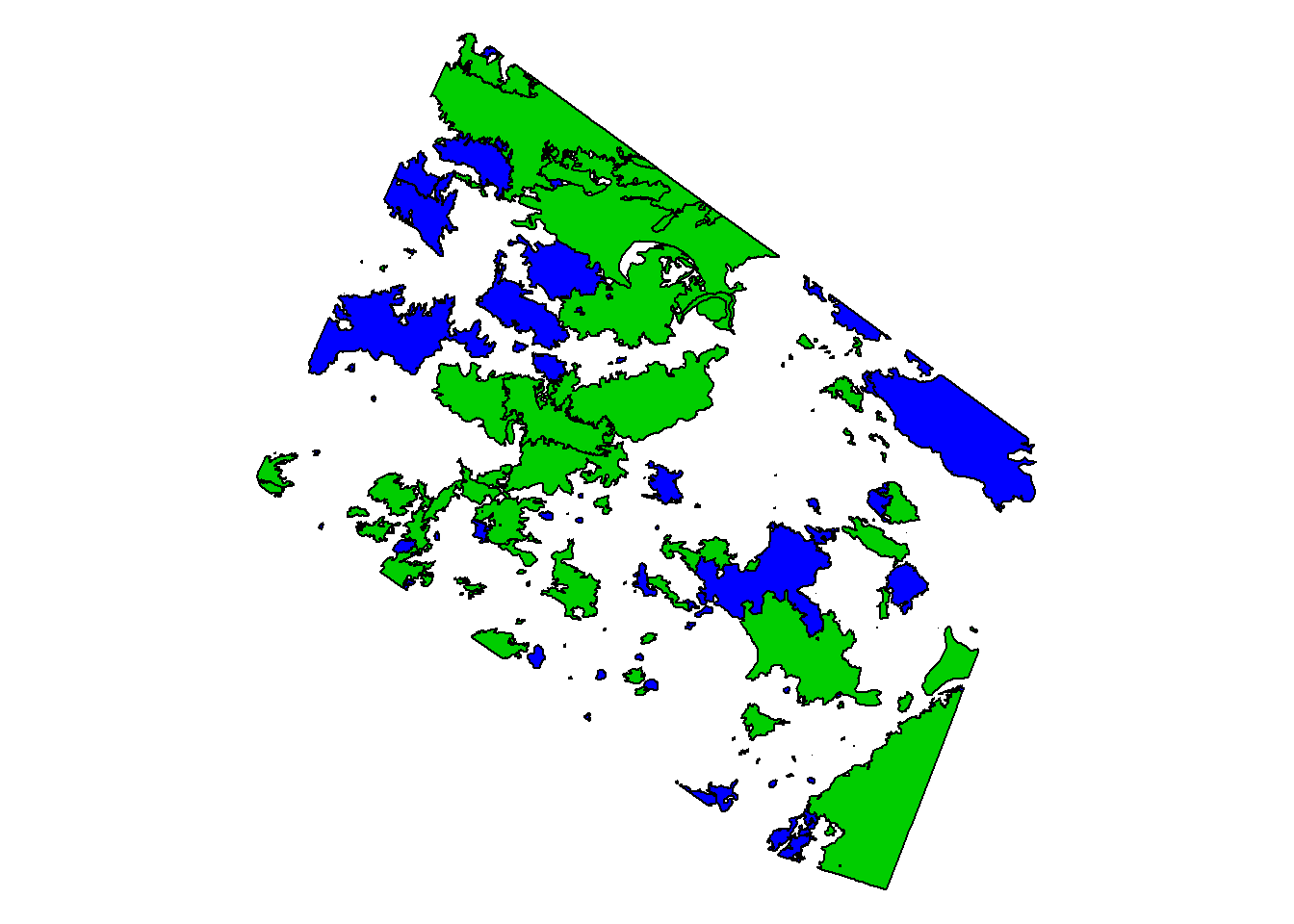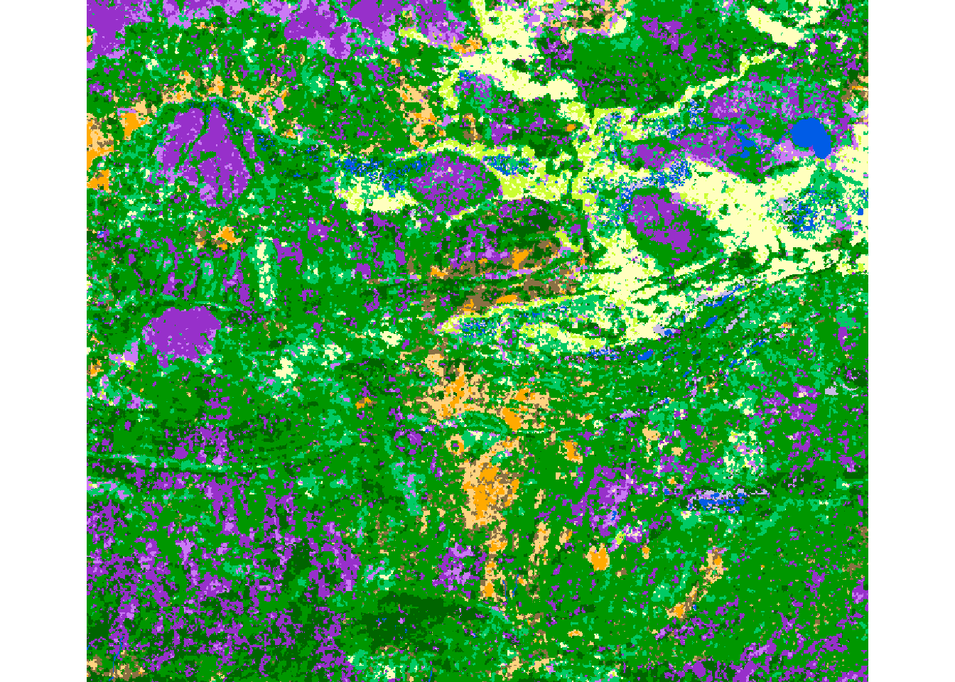 We are working with an EOSD (Earth Observation for Sustainable Development of Forests) raster object. EOSD is a land cover map of the forested area of Canada. We will be working with just one clip (one section of the map).