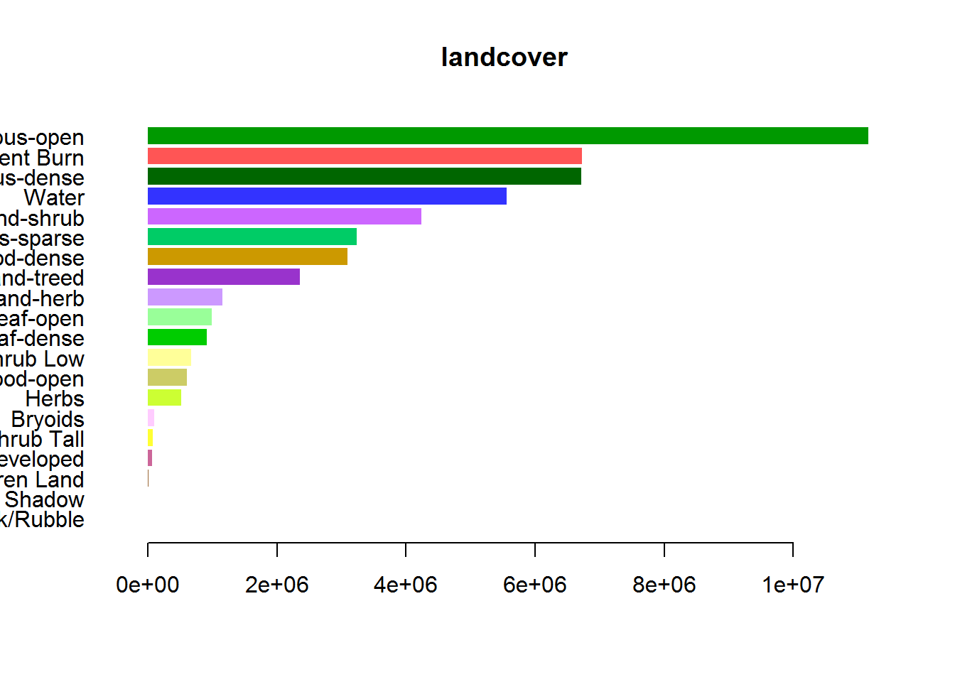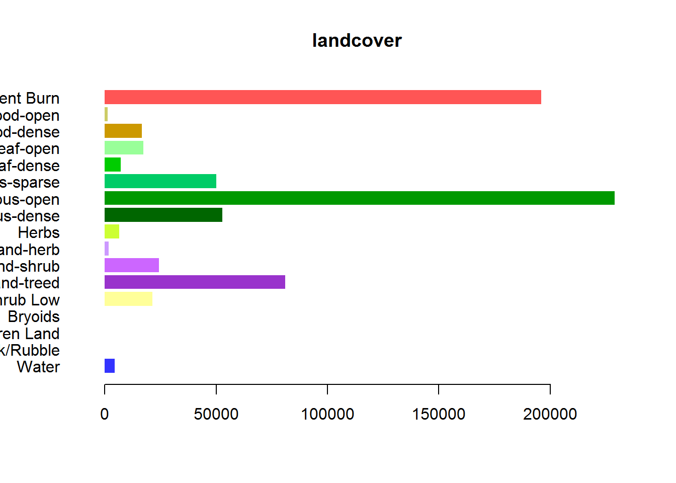 Clearly, this portion is dominated by the recent burn! Here are the exact proportions: