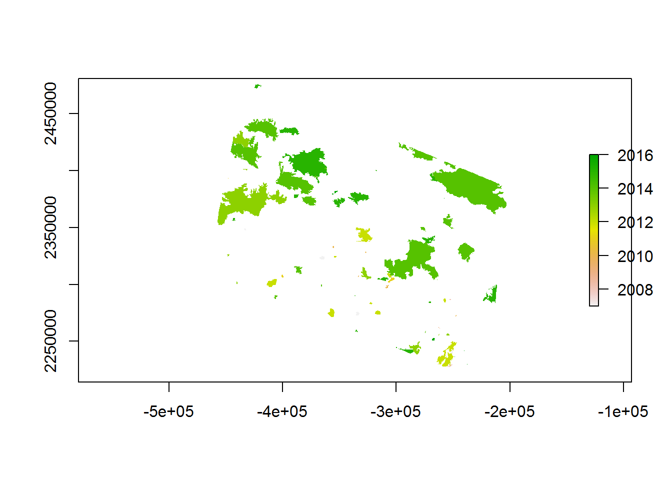 ## levels(recentfire.raster)[[1]] <- data.frame(ID = 1:nrow(levels(recentfire.raster)[[1]]), levels(recentfire.raster)[[1]])