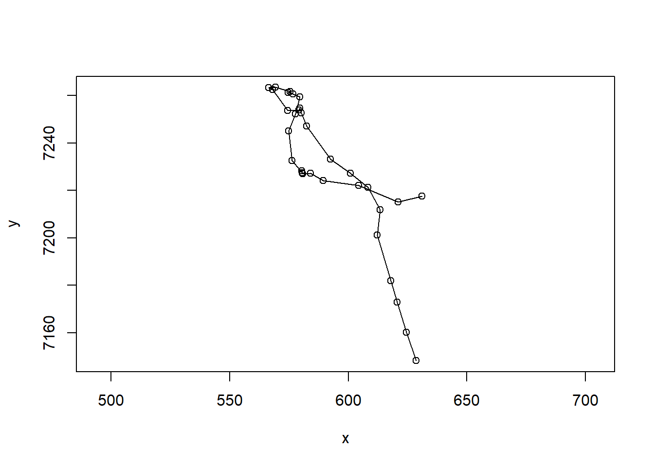 m <- subset(caribou.daily.df, id == myid)[c("lon", "lat")]