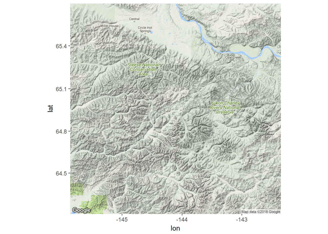 caribou.map <- get_map(location = c(longrange[1], latrange[1], longrange[2], latrange[2]), maptype = "terrain", source="google")