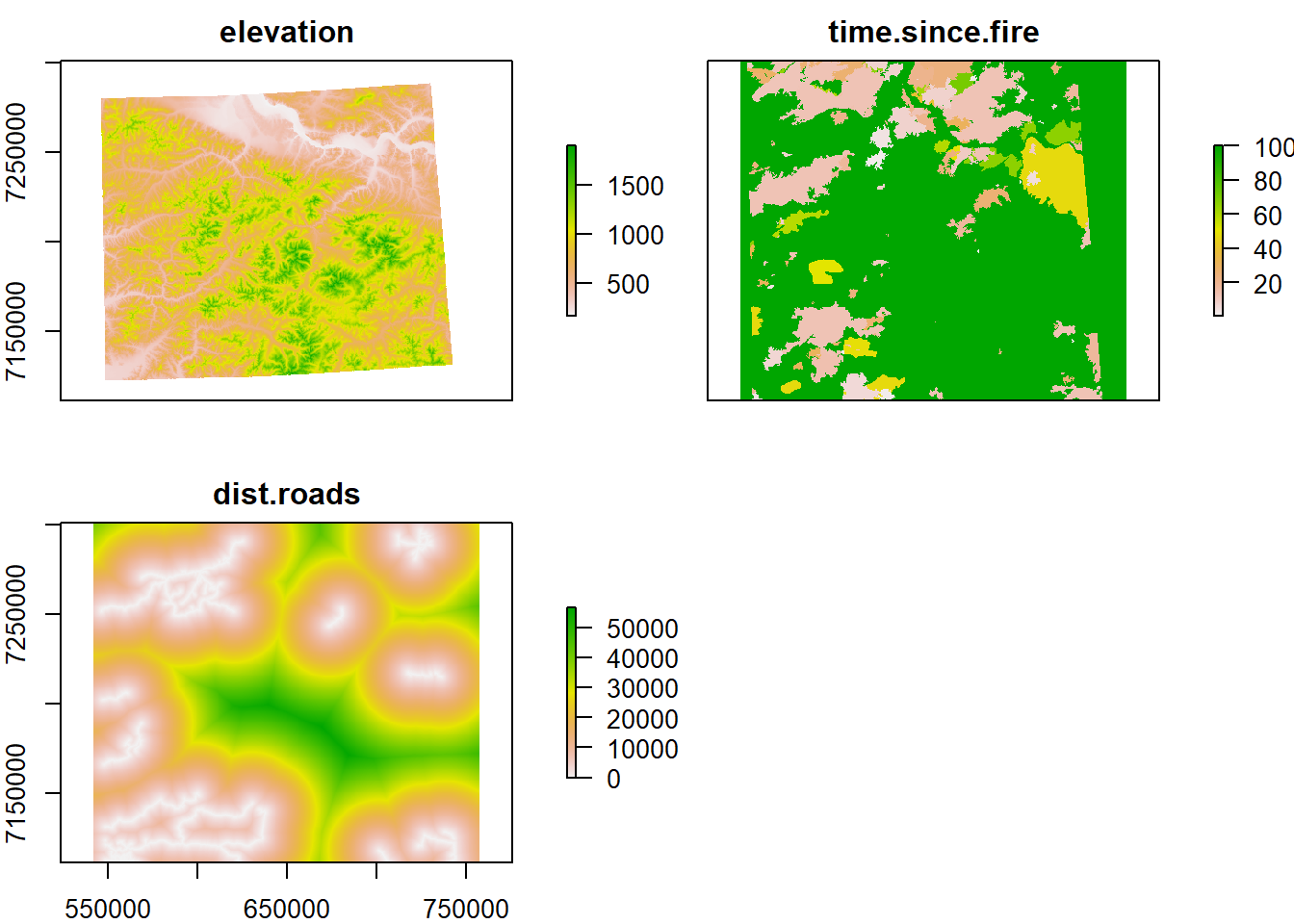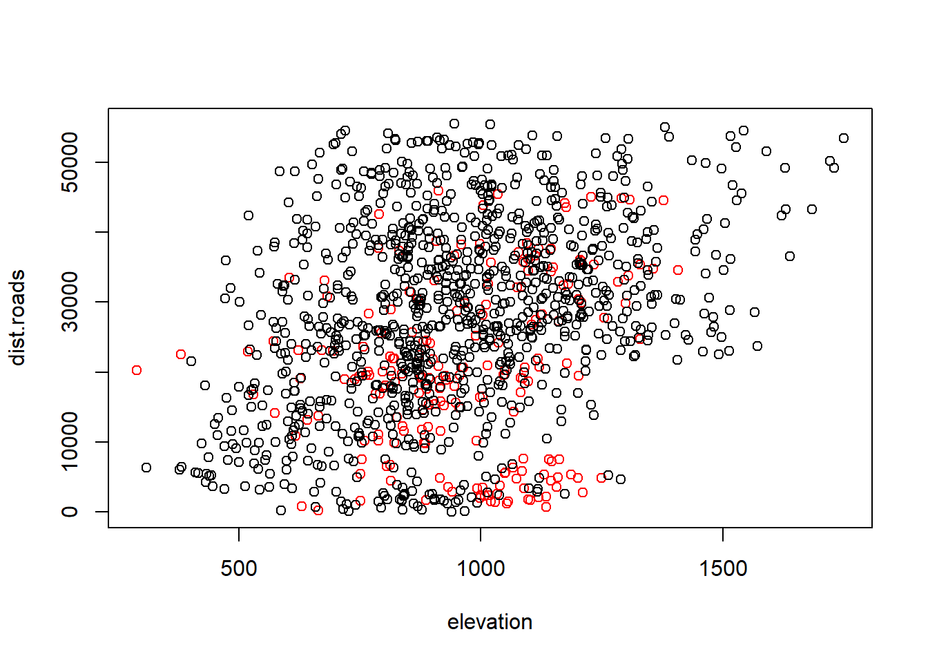 ## # elevation <dbl>, tsf.years <dbl>, roads <dbl>