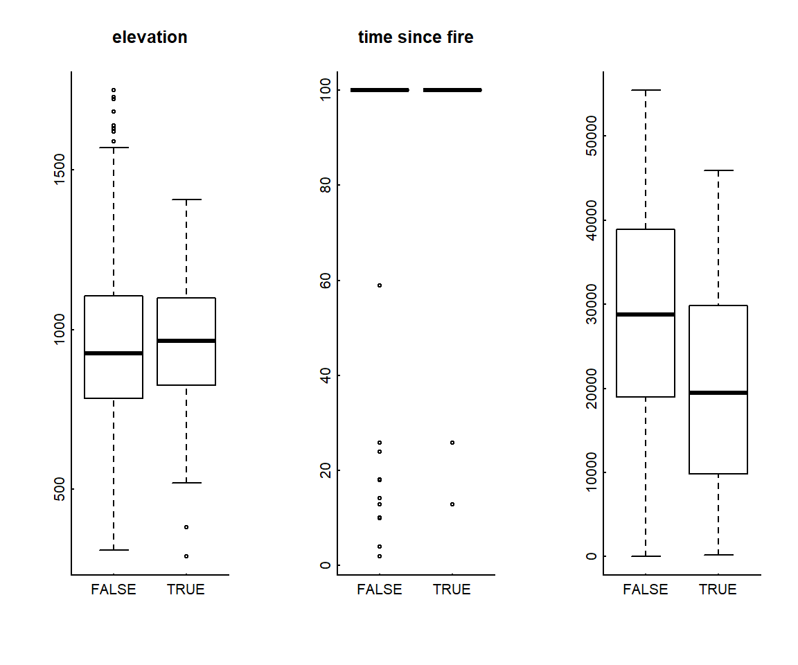 boxplot(time.since.fire ~ Used, data = Data.rsf, main = "time since fire")