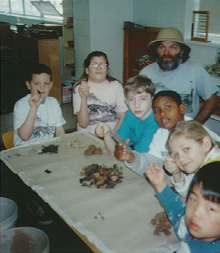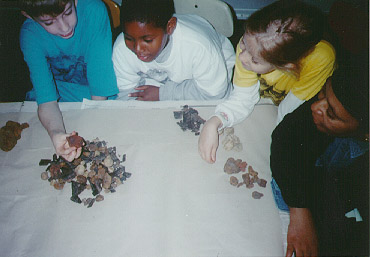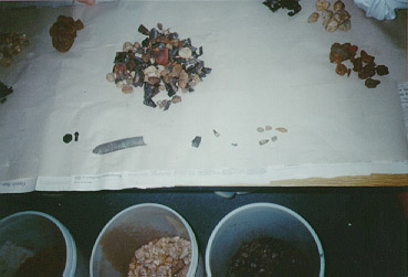 ![]() | Soon the piles of ironstone, rounded stones and lignite begin to grow in front of each student. |