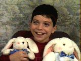 He likes to do flips. He has a blue ribbon on his neck. He has